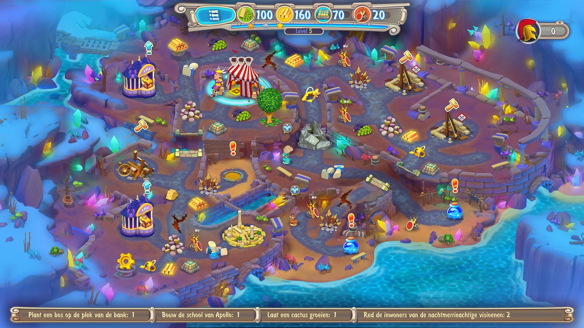 Zeus heeft geen keus en vraagt Hermes om hulp. Trek er samen met dit tweetal op uit om de inwoners van Griekenland te redden. Al snel stuit je op een spoor van verwoesting. Huur werkers in en zorg ervoor dat hun magen gevuld zijn zodat ze verwoeste gebouwen kunnen herstellen, rotsblokken en puin kunnen verwijderen, wegen kunnen repareren en nog veel meer andere klussen uit kunnen voeren. Verzamel onderweg genoeg materialen en goud voor de herstelwerkzaamheden. Lukt het jou te achterhalen wat Kronos van plan is én hem te stoppen? Bereid je voor op een enerverend avontuur!