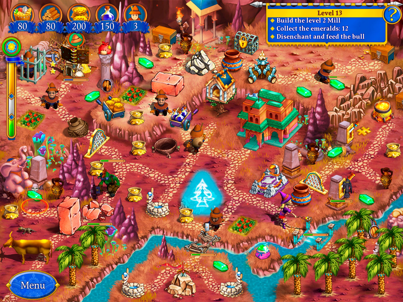 Reis door prachtige landschappen, repareer en verbeter gebouwen, verzamel grondstoffen, delf goud en voer nog veel meer taken uit. In elk level staat je een nieuwe uitdaging te wachten! Open kisten, zorg ervoor dat de magen van jouw werkers gevuld blijven, hak bomen om, vul gaten in de weg op en overwin nog veel meer obstakels. Zal het John en Mary lukken de radja op te sporen? Als de oosterse prins niet snel gevonden wordt, zal koning Arthur allesbehalve blij zijn!