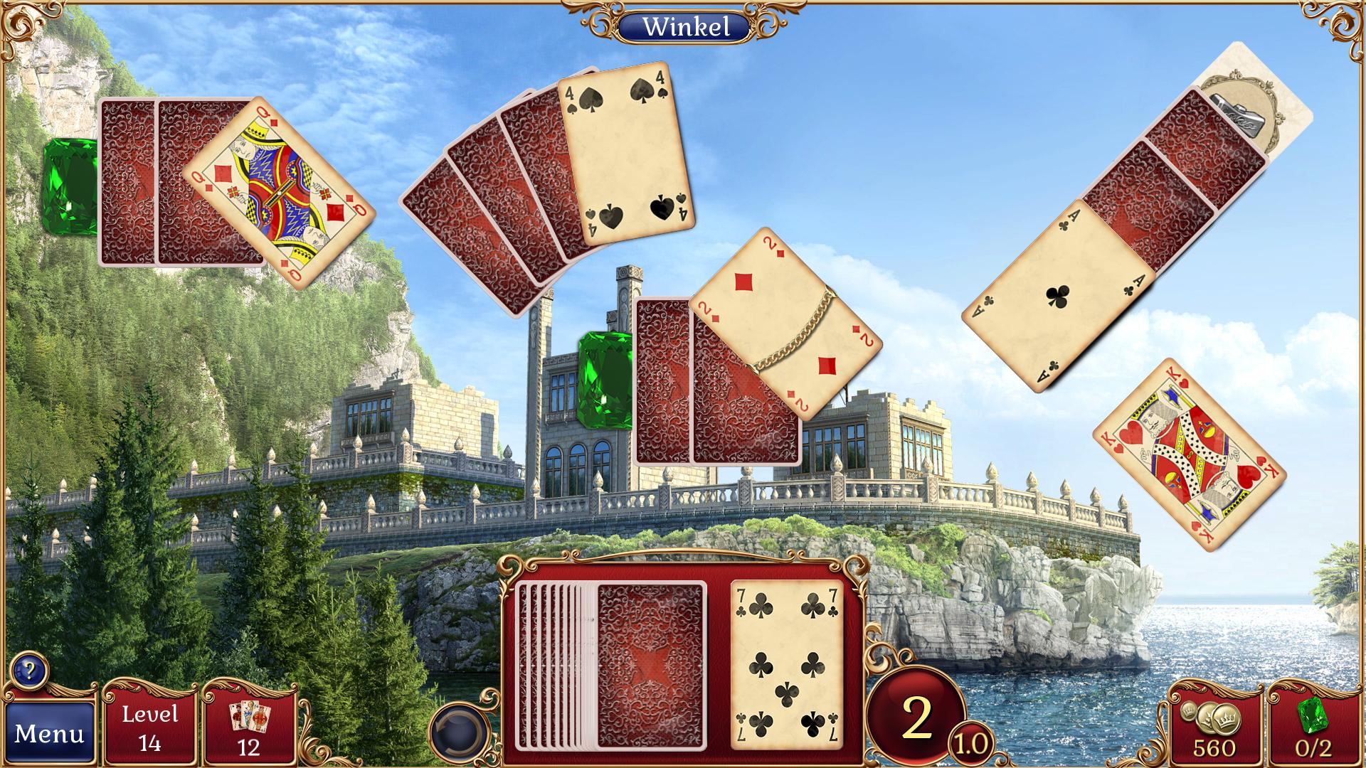 Overwin obstakels zoals bevroren kaarten of kaarten die van een slot zijn voorzien. Denk vooruit om het einde van het level te kunnen halen. Voor het opknappen van de kastelen zijn edelstenen nodig. Probeer ze in elk level te bemachtigen! Met de munten die je verdient, kun je een bezoekje aan de winkel brengen. Koop handige bonusopties om jouw reis door het koninkrijk zo soepel mogelijk te laten verlopen. Lukt het jou het koninkrijk weer te laten stralen? Alle onderdanen rekenen op je!