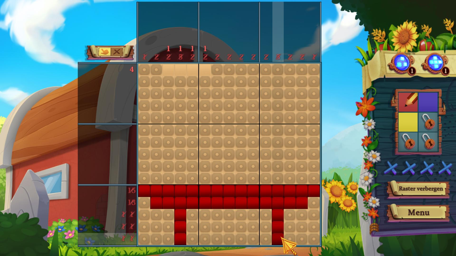 Stort je op maar liefst 200 prachtige nonogrammen om de boerderij stukje bij beetje op te knappen. Geniet van een gezellige zomerse sfeer, de ontspannende achtergrondmuziek en let goed op de getallen die op de randen van de speelvelden staan. Vul de juiste vakjes met de juiste kleuren om bonte kippen, een schattige muis, sappige aardbeien, een rustiek huisje en nog veel meer prachtige afbeeldingen tevoorschijn te toveren.