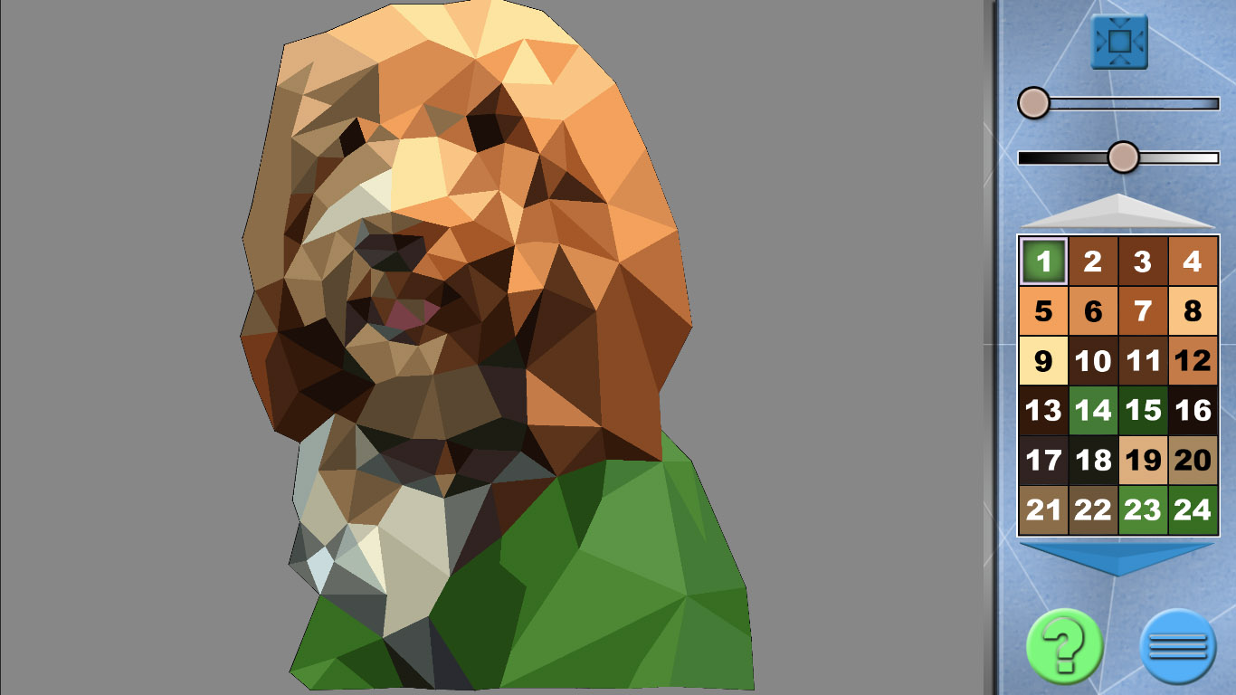 Let goed op de aanwijzingen en voorzie de juiste vlakken van de juiste kleuren om fraaie afbeeldingen tevoorschijn te toveren. Je zult meteen doorhebben hoe het moet. De kunstwerken in dit spel zijn veelhoekig, wat voor een bijzonder effect zorgt. Lukt het jou alle uiteenlopende afbeeldingen te voltooien? Kunstenaars van alle leeftijden zullen zich urenlang met dit prachtige spel vermaken!