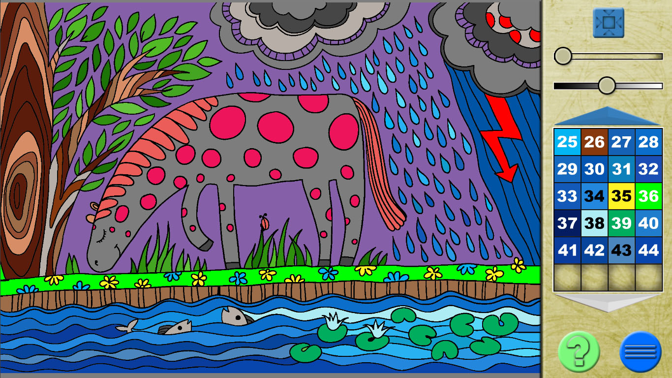 Kijk goed naar de getallen die in de witte vlakken op het scherm staan en vul ze met de bijbehorende kleuren om een parmantig paard, een vrolijk vogeltje, een stralende zon en nog veel meer kleurrijke kunstwerken tevoorschijn te toveren. Je zult meteen doorhebben hoe het in zijn werk gaat. Terwijl de kleuren van het scherm spatten, kom jij helemaal tot rust. Gun jezelf deze ontspannende spelervaring en geniet urenlang van al deze kleurenpracht!