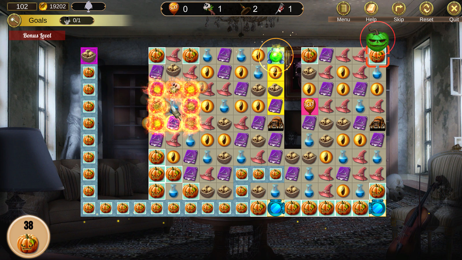Het huis van de oude dame zit vol geesten die alleen met het magische licht van de talismans verjaagd kunnen worden. Stort je op spookachtige levels en vorm zoveel mogelijk combinaties van drie of meer identieke griezelvoorwerpen om het licht van de talismans naar de spookachtige bewoners te leiden. Verdien munten om het terras van het huis volledig in halloweenstijl te decoreren, speel tussendoor leuke minispellen en rust niet voor de laatste geest uit het huis verdreven is!