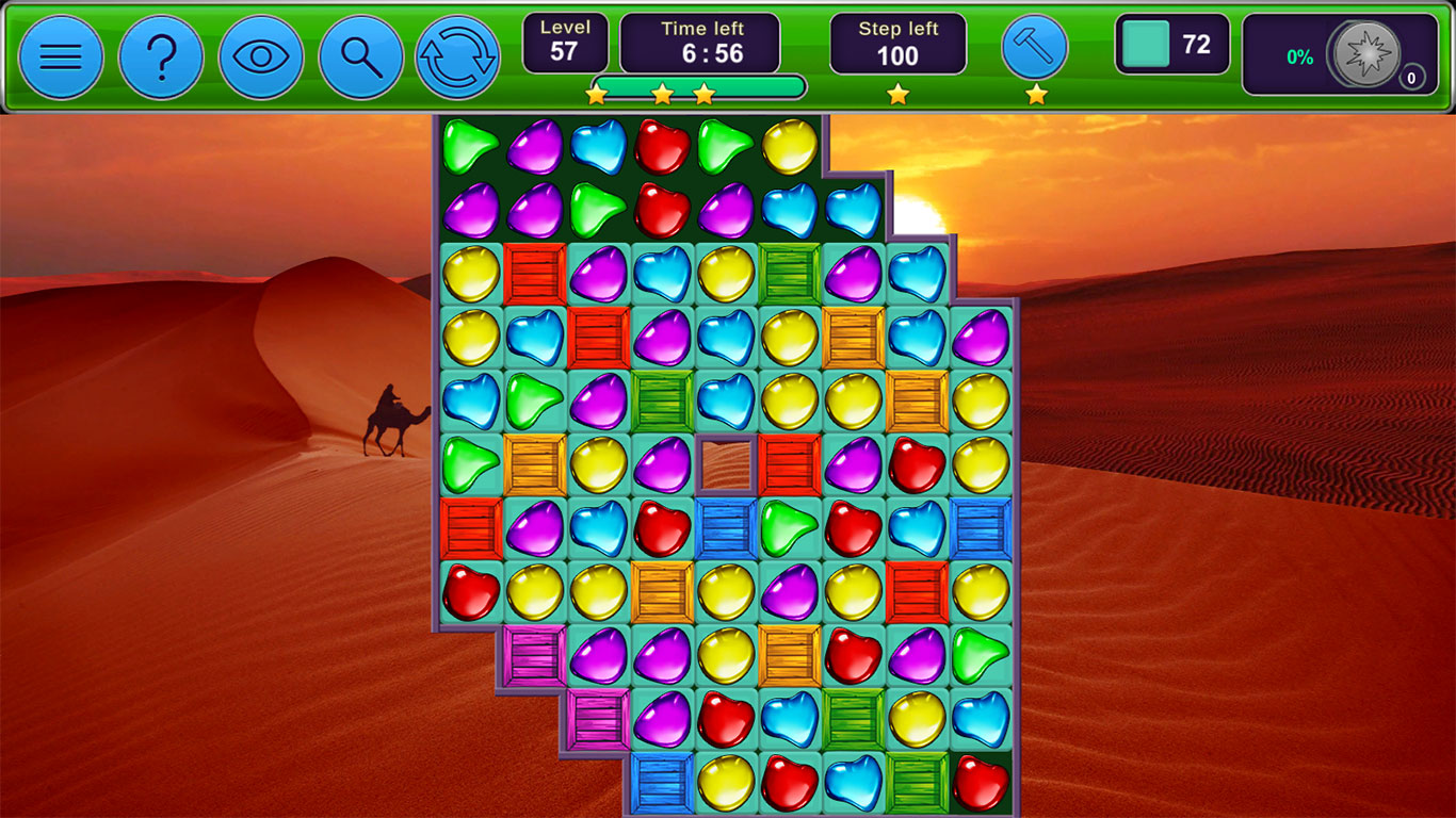 Reis met ons mee naar een uitgestrekte woestijn waar een eenzame kameel verkoeling zoekt, een sierlijke boom die de waterdruppels van een schitterende waterval probeert op te vangen en een indrukwekkende rotsformatie in een woest landschap. Op deze bijzondere plekken wachten uitdagende levels vol glinsterende edelstenen op een speler die ze weet te bedwingen. Ben jij degene die ze allemaal de baas is?