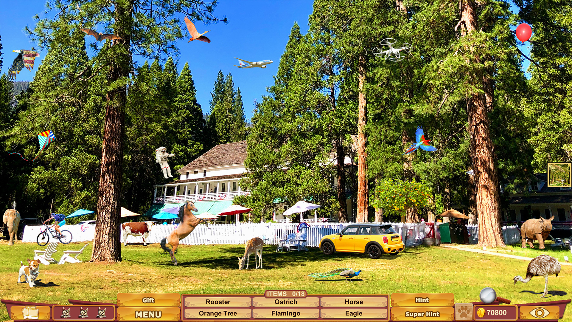 Op elke locatie die je bezoekt, zijn talrijke voorwerpen verborgen. Spoor alle voorwerpen op én speur in elk level ook naar drie katten, een camera en een pootafdruk om extra beloningen in de wacht te slepen. Lukt het je niet de laatste voorwerpen te vinden? Open dan de verborgen locaties om het level succesvol te voltooien! Koop cadeautjes in de geschenkenwinkel en speel leuke minispellen zoals Vind de Verschillen. Vul jouw koffer vandaag nog met jouw favoriete reiskleding en ga met ons mee op reis!