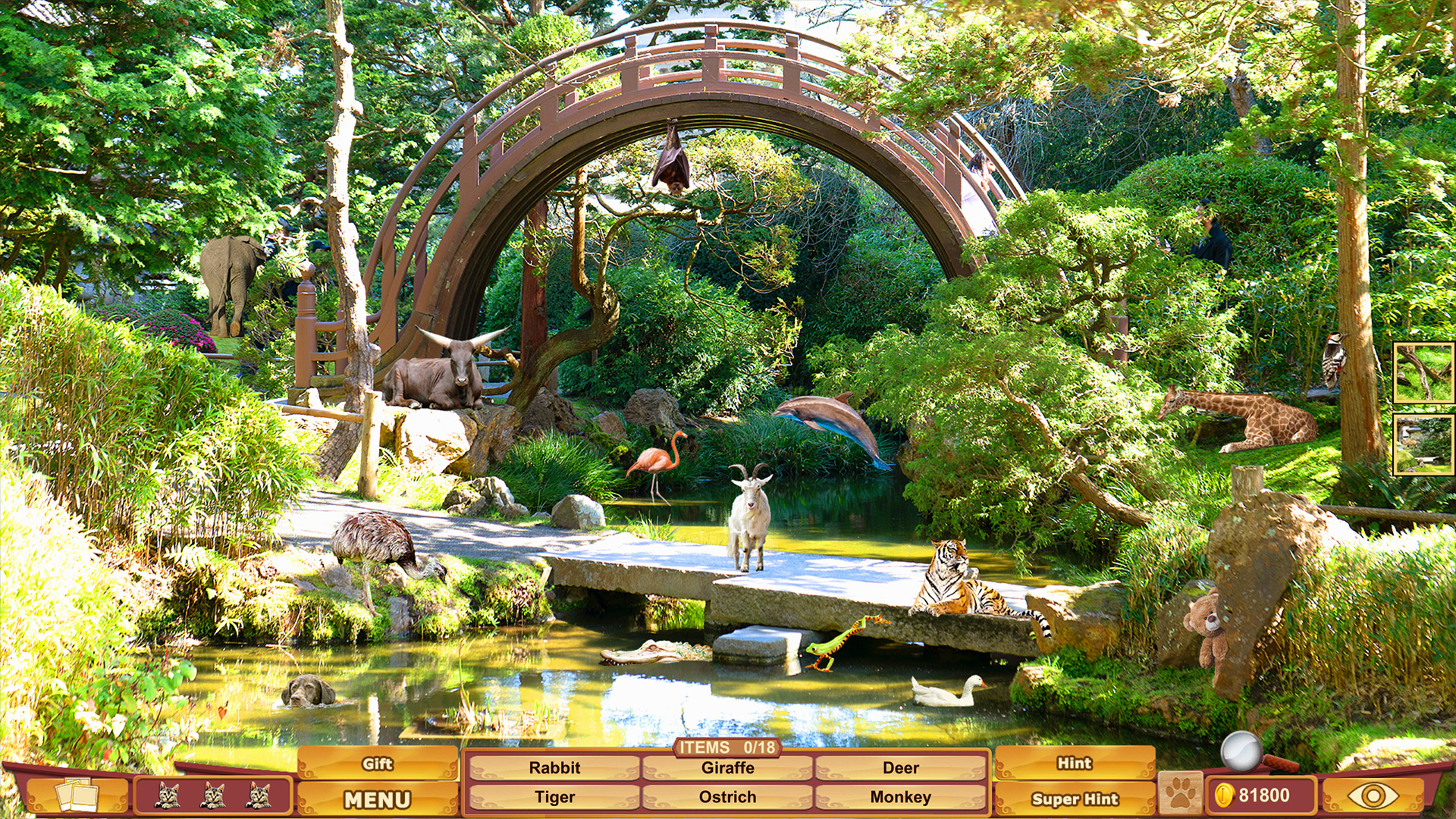 Op elke locatie die je bezoekt, zijn talrijke voorwerpen verborgen. Spoor alle voorwerpen op én speur in elk level ook naar drie katten, een camera en een pootafdruk om extra beloningen in de wacht te slepen. Lukt het je niet de laatste voorwerpen te vinden? Open dan de verborgen locaties om het level succesvol te voltooien! Koop cadeautjes in de geschenkenwinkel en speel leuke minispellen zoals Vind de Verschillen. Vul jouw koffer vandaag nog met jouw favoriete reiskleding en ga met ons mee op reis!