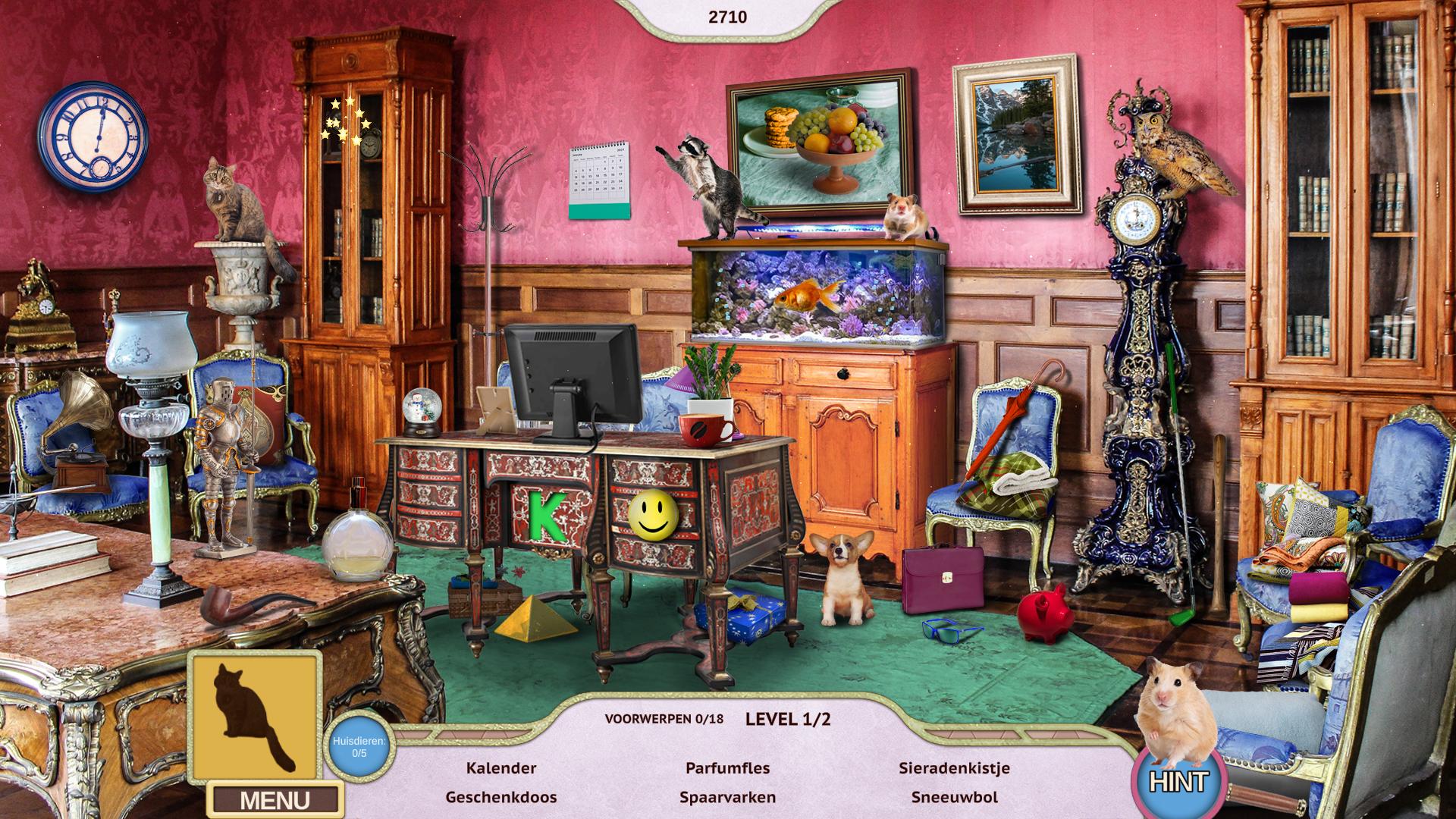 Spoor op elke locatie allerlei soorten verborgen voorwerpen op, terwijl je van vrolijke taferelen geniet. Kijk ook goed om je heen want op elke locatie zijn ook een aantal huisdieren verstopt. Lukt het jou alle honden, katten, cavia’s, hamsters, schildpadden en goudvissen te vinden? Je zult zelfs op schattige chinchilla’s en schildpadden stuiten! Speel tussendoor leuke minispellen en kies in de huisdierenwinkel jouw favoriete huisdieren uit. Kun jij de laatste voorwerpen niet vinden? Open dan de verborgen gebieden om ook de laatste spulletjes op te sporen. Laat jouw reis vol dierenvriendjes vandaag nog van start gaan!